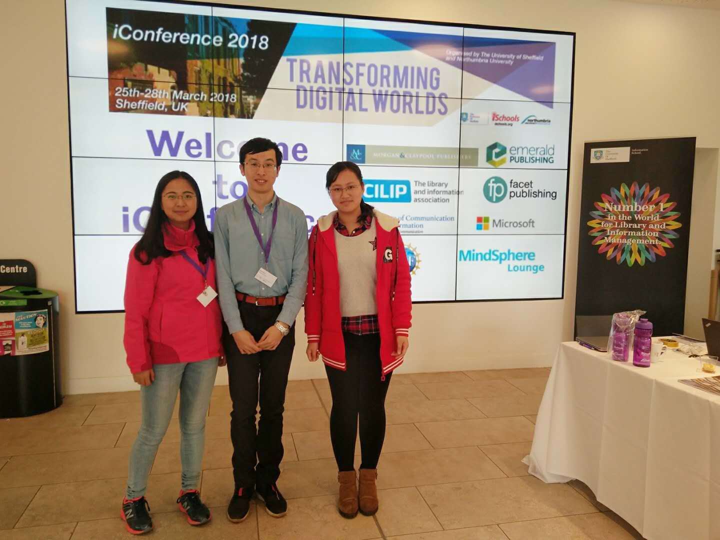 2018年3月25日至3月28日,我系2014级本科生安佳鑫、焦祎凡、李恬,2015级本科生尚闻一赴英国谢菲尔德参加国际iSchool联盟年会iConference。该会议由iSchools联盟主办,旨在促进国际信息学领域的教学与科研合作,是信息学领域的重要会议。本届会议在英国谢菲尔德市召开。