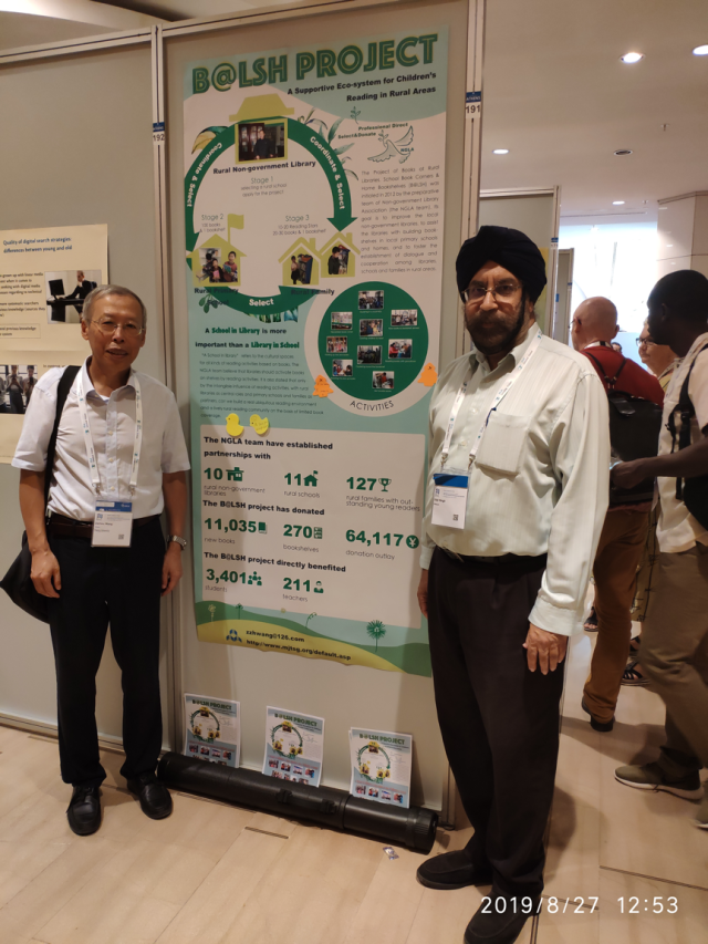 同时,同一主题的学术海报《B@LSH:A Supportive Ecosystem for Children‘s Reading in Rural Areas》也被本届大会录用并在为期两天的海报会议中进行展示和交流。这一研究成果得到了国内外同行的关注,在分会场和海报会议中吸引了不少感兴趣的人前来进一步了解。比如,马来西亚malaya大学的退休教授Diljit Singh对我们的项目很感兴趣,觉得在其他地区有推广意义。