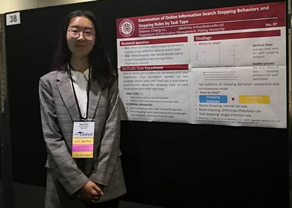 德德玛同学和刘畅老师完成的海报《Examination of Online Information Search Stopping Behaviors and Stopping Rules by Task Type》被会议录用并进行了展示,这一在“信息行为”领域中关于“搜索停止行为”和“搜索停止规则”的探索型研究在会场收获了很多讨论和对未来发展方向的建议。
