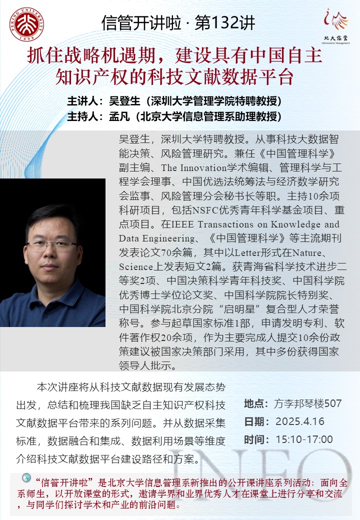 信管开讲啦·第132讲 | 抓住战略机遇期,建设具有中国自主知识产权的科技文献数据平台