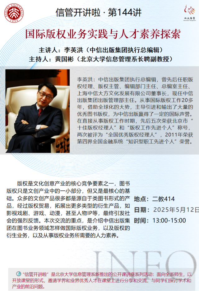 信管开讲啦·第144讲 | 国际版权业务实践与人才素养探索