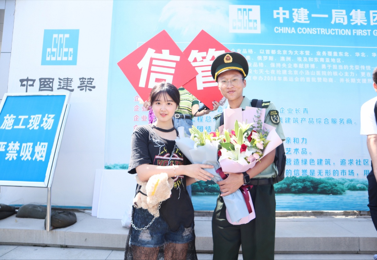 北京大学2019级学生军训团信息管理系领队张恂达老师,在军训期间与信管2019级新生们同吃同住,细致认真地完成了军训期间的每一项工作,得到了师生的广泛认可,同学们也为返校的张恂达老师精心准备了一束鲜花。