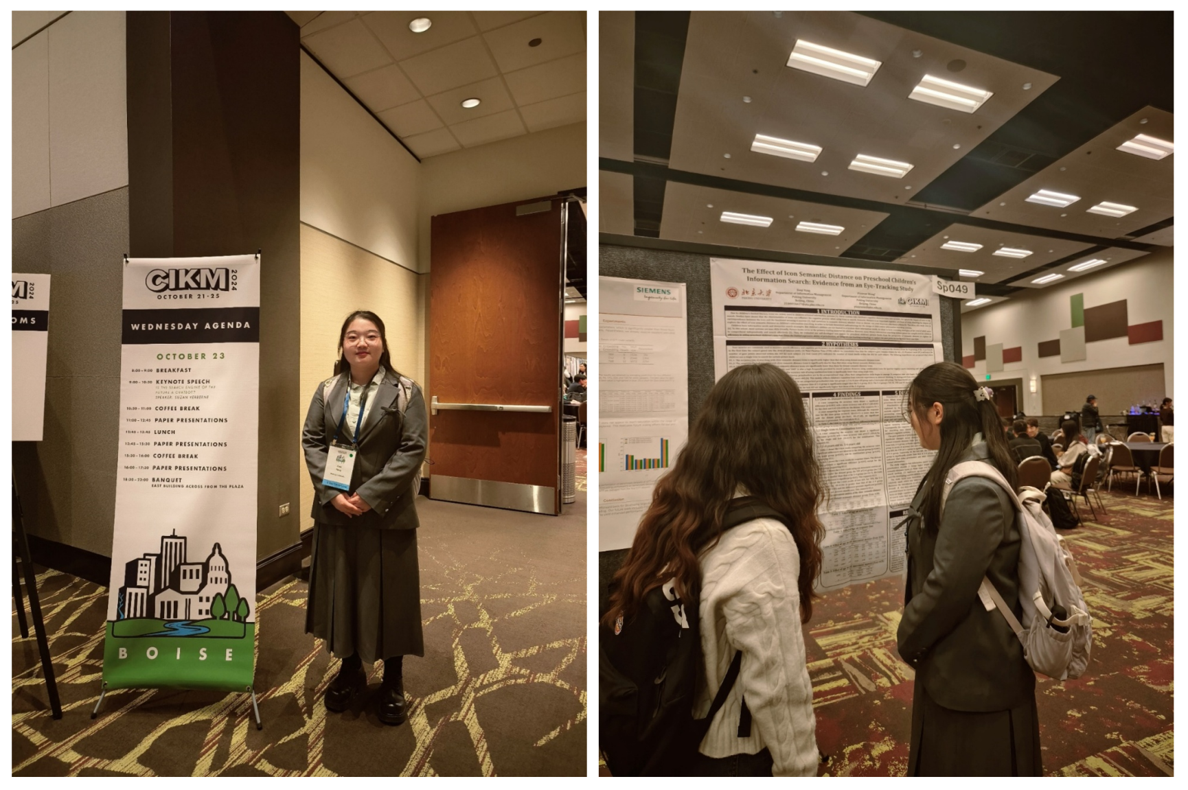 2024年10月21日至10月25日,第33届国际计算机学会信息与知识管理大会(The 33rd ACM International Conference on Information and Knowledge Management, CIKM)在美国爱达荷州博伊西召开,信息管理系2021级本科生杨佳琪赴美参会。