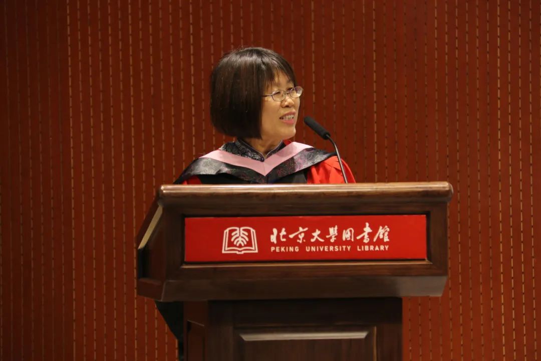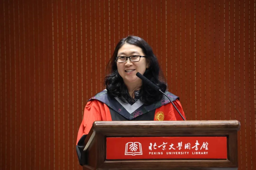 随后,优秀毕业生代表,2023级情报学硕士生王睿登台发言,以“回望”与“展望”为主题,与大家分享自己在北大信管的求学旅程。在“回望”中,她回忆了课堂内外的专注与坚持、核对数据的细致与严谨,也感念于师长们“润物细无声”的引导和点拨,更动情讲述了与同学们携手并肩、彼此守望的温暖情谊;在“展望”中,她以豪情与担当,表达了对未来的坚定信心与赤诚选择——愿以所学服务国家所需,将青春写进时代的答卷。