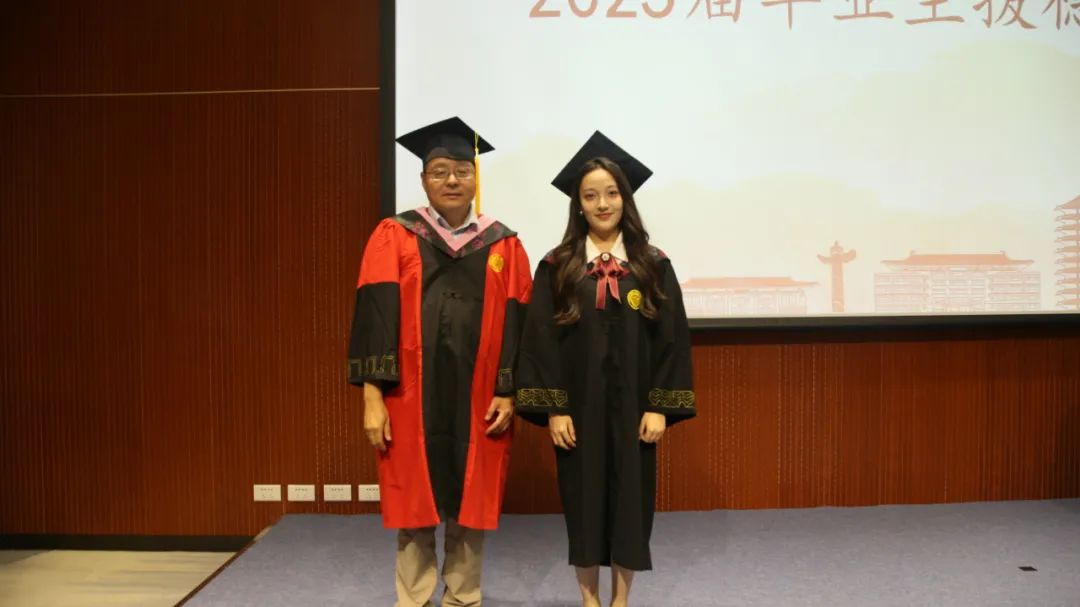 随后,2025届毕业生拨穗仪式正式举行。在张鹏翼老师的主持下,周庆山教授、王军教授为同学们一一拨穗,并对同学们顺利毕业、取得学位表示祝贺。