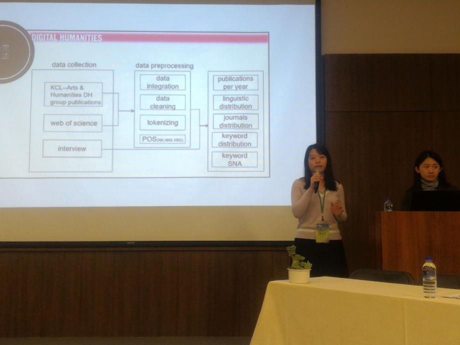 今年,张力元同学合作完成的长文章《伦敦大学国王学院30年数字人文研究热点分析》被会议录用并进行了展示。同样被录用的还有我系师生参与合作完成的两篇海报:杨明仪同学、王军老师和邱勇同学合作完成的海报《“一花开五叶”——禅宗传承视觉化平台构建》;杨浩老师(北京大学哲学系)、杨明仪同学、刘千慧同学、王军老师合作完成的海报《以何“半部”<论语>治天下?——基于文档向量相似性的论语篇章结构分析》。
