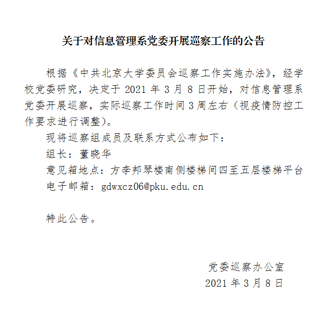 关于对信息管理系党委开展巡察工作的公告