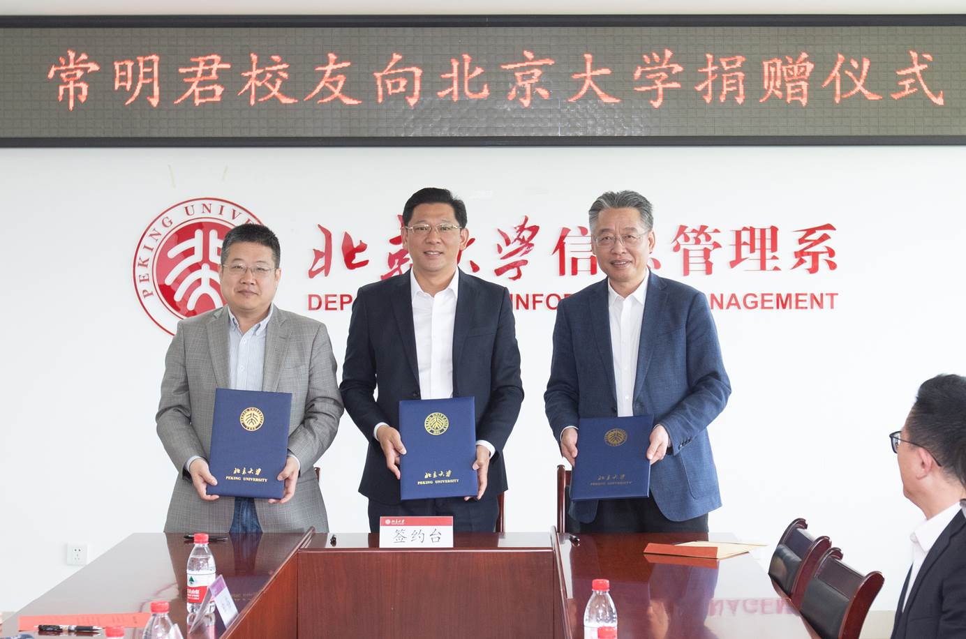 常明君,北京大学教育基金会副秘书长王勇,北京大学校友会副秘书长、校友工作办公室副主任李存峰,北京大学元培学院党委副书记丁夕友,华体会手机网页版登录入口,华体会中国党委书记、系主任张久珍教授,信息化与人类信息行为研究所所长、信息管理系教授陈建龙,华体会手机网页版登录入口,华体会中国副系主任张鹏翼,信息管理系主任助理、大数据管理与应用教研室主任黄文彬,华体会手机网页版登录入口,华体会中国情报学教研室主任刘畅,华体会手机网页版登录入口,华体会中国长聘副教授李胜利等共同出席。捐赠仪式由北京大学信息化与人类信息行为研究所副所长、信息管理系教授申静主持。