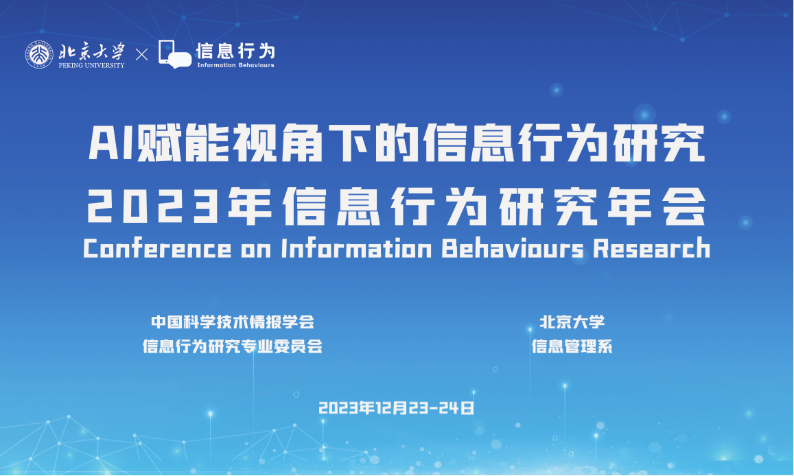 2023年12月23日至24日,2023年信息行为研究年会在北京大学成功举办。本次会议的主办单位为中国科学技术情报学会信息行为研究专业委员会,承办单位为华体会手机网页版登录入口,华体会中国,并得到了《中国图书馆学报》《情报学报》《大学图书馆学报》《图书情报工作》《图书情报知识》《情报资料工作》《情报理论与实践》《信息资源管理学报》《Data and Information Management》《农业图书情报学报》等期刊的大力支持。