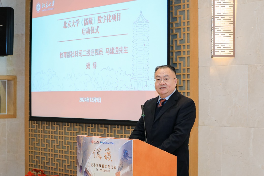 马建通表示,北大启动《儒藏》数字化项目,是古籍整理大规模数字化的有益尝试,是以有组织科研推动中华优秀传统文化创造性转化、创新性发展的生动实践,也是促进文明交流互鉴、构建国际学术共同体的成功范本。他表示,期待北大继续秉承优良传统,在推动以《儒藏》全本编篆为代表的古籍研究保护利用上,走在前、作表率,助力提升中华文明传播影响力和国家文化软实力,为以中国式现代化全面推进中华民族伟大复兴贡献源源不断、更为丰富的精神力量。教育部将一如既往对《儒藏》工程的组织实施给予支持。