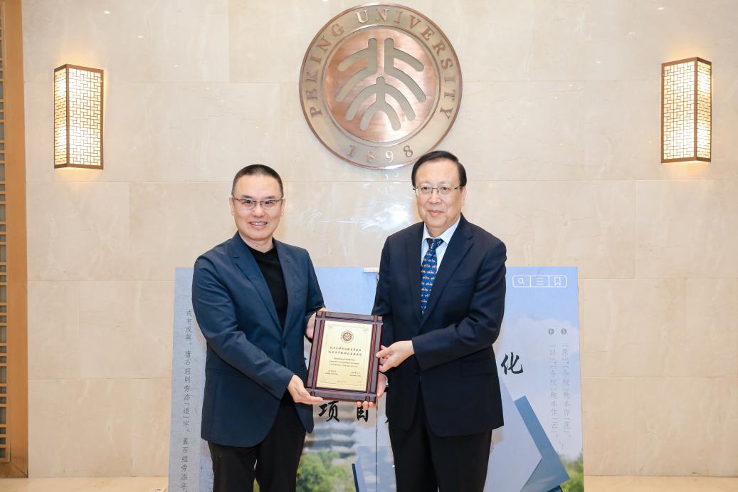 郝平、安平秋、张羽、杨芳、马建通、王博和董志勇共同启动《儒藏》数字化项目。郝平向北京字节跳动公益基金会颁发北京大学杰出教育贡献奖。